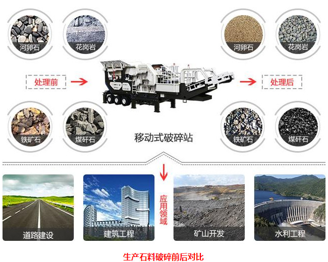 移動式破碎站具有各級破碎設備匹配合理、整線流程出料通暢、運行可靠、操作方便、節能的特點。尤其是機動性好,能隨原料地或施工場地一起延伸,并可進行多種組合,滿足不同用料需要。