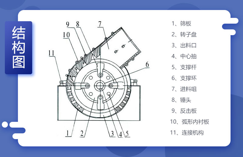 錘式破碎機的主要工作部件為帶有錘子(又稱錘頭)的轉子,轉子由主軸、圓盤、銷軸和錘子組成。恒通錘式破碎機具有破碎比大(10-40)、排料粒度均勻、過粉碎現象少、耗能低、造價低、便于維護等優勢。